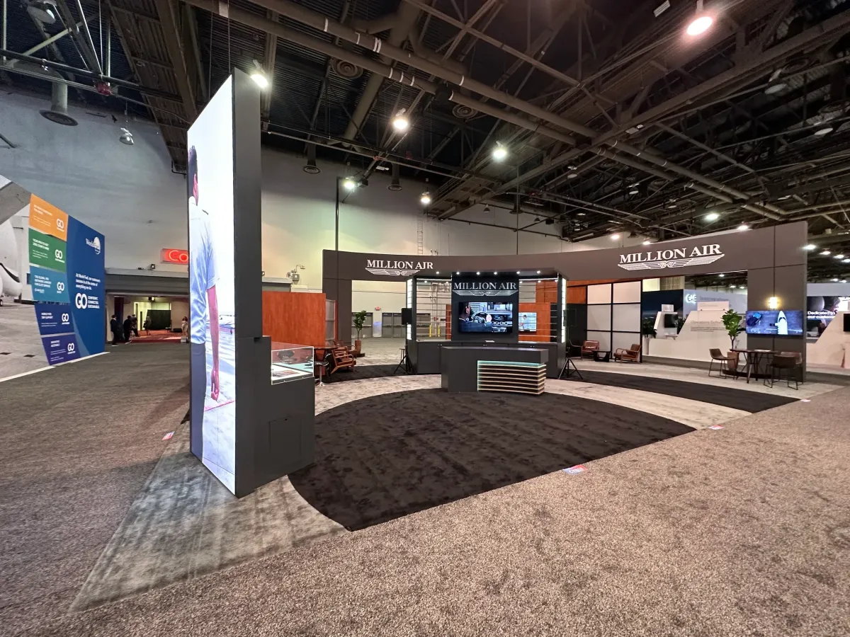 Premium exhibit design reflecting Million Air's commitment to luxury FBO services and unmatched performance in private aviation.