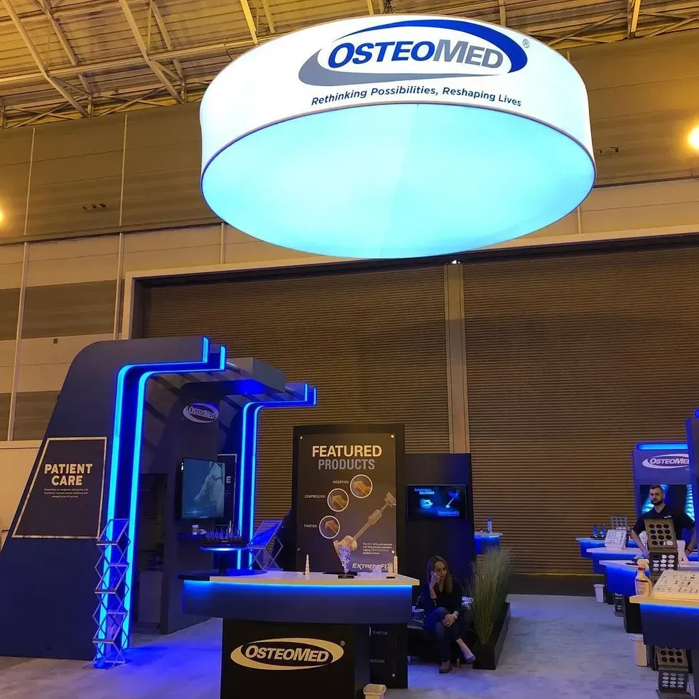 Clean, professional booth design communicating OsteoMed's expertise in orthopedic medical device solutions.
