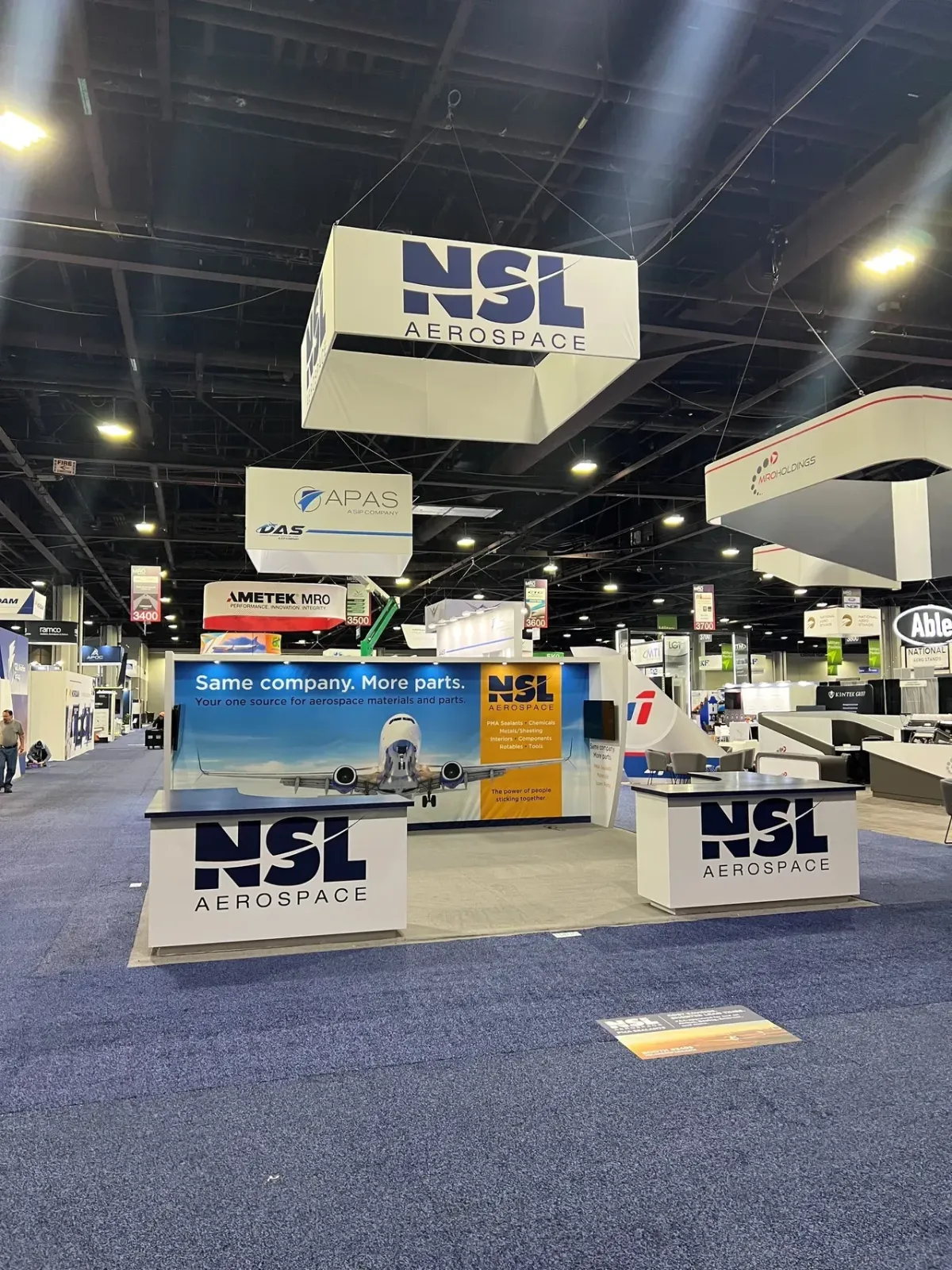 Professional trade show presence showcasing NSL's precision materials testing expertise and aerospace industry leadership.
